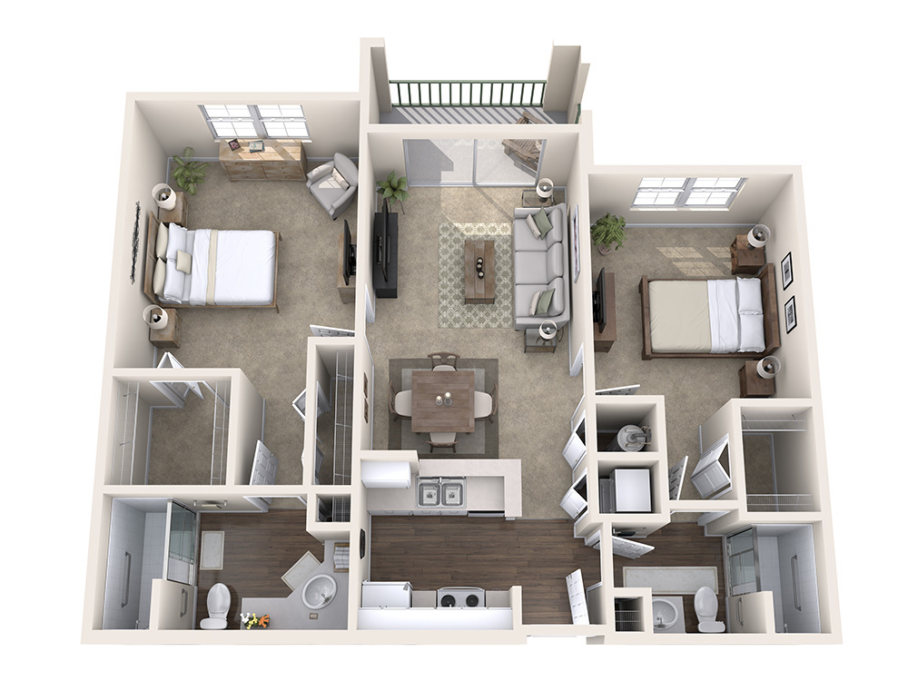 2 Beds, 2 Baths, 1018 sq ftModel Gallery