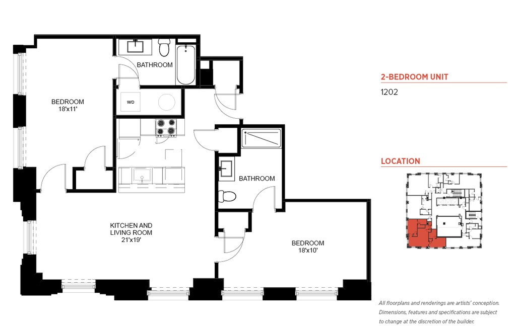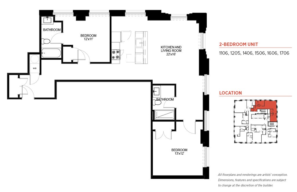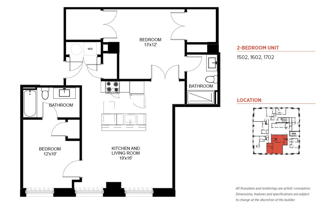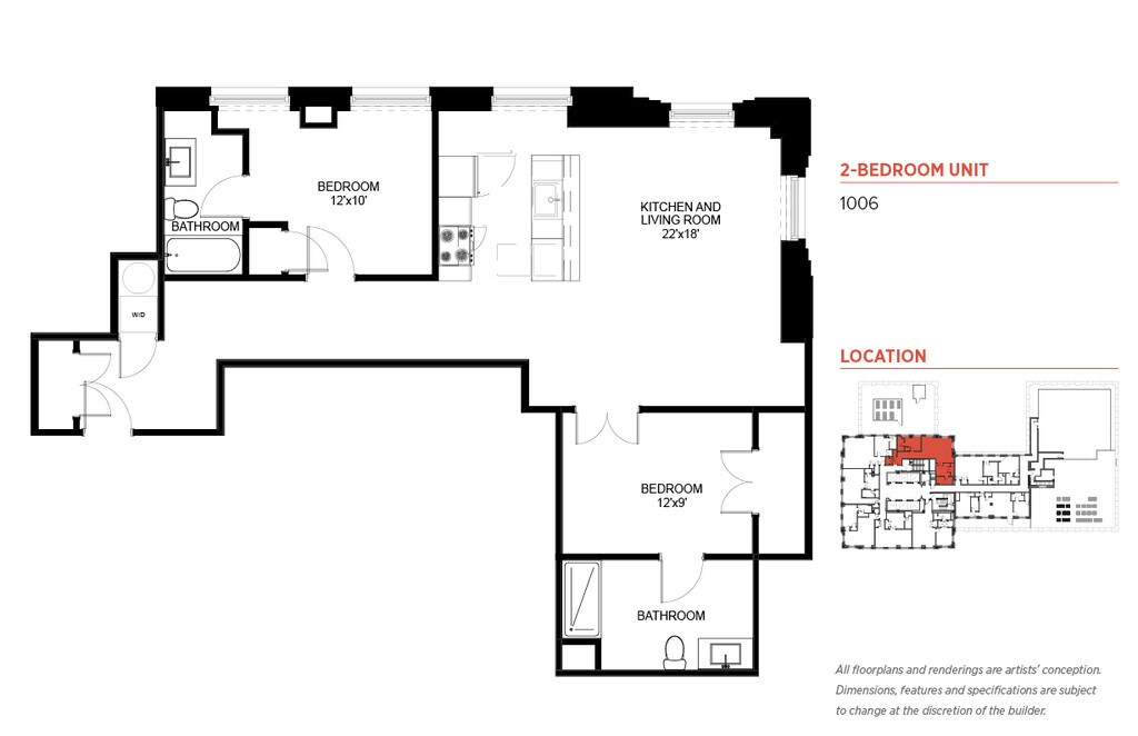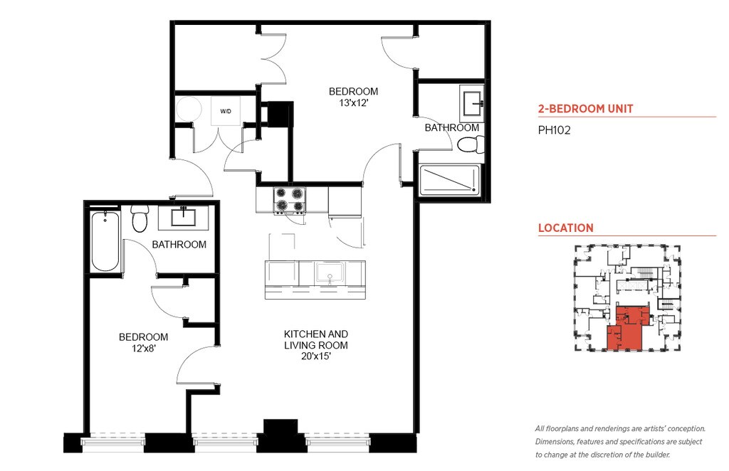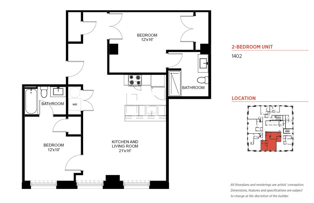 1 Bed 1 Bath - Floorplan 12 2 Bedrooms