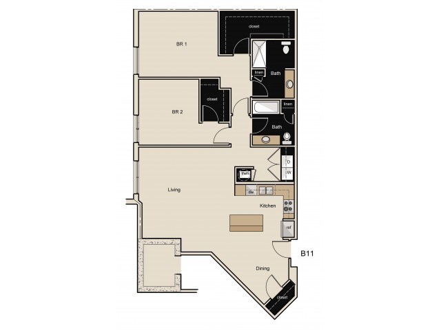 1 Bed, 1.5 Baths, 951 sq ftModel Gallery