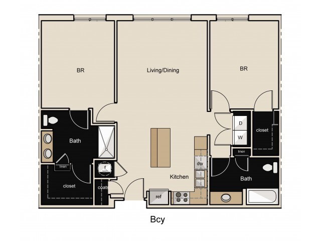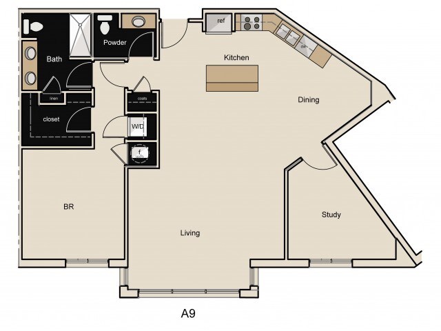 A8 - Floorplan 1 Apartment Unit: 210Apartment Model: A81 Bedroom, 1.5 Bath, 913 sq ftAvailable NowFloorplan ACY