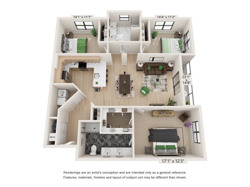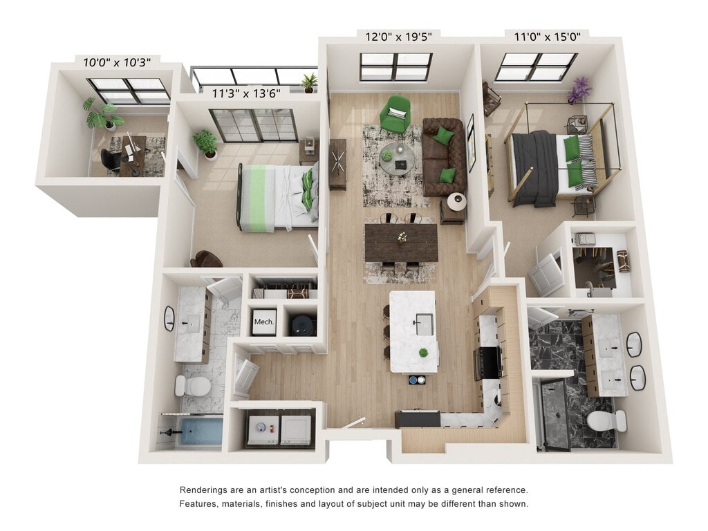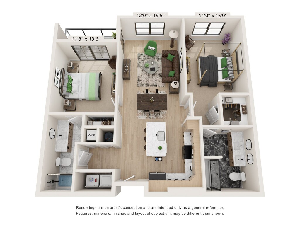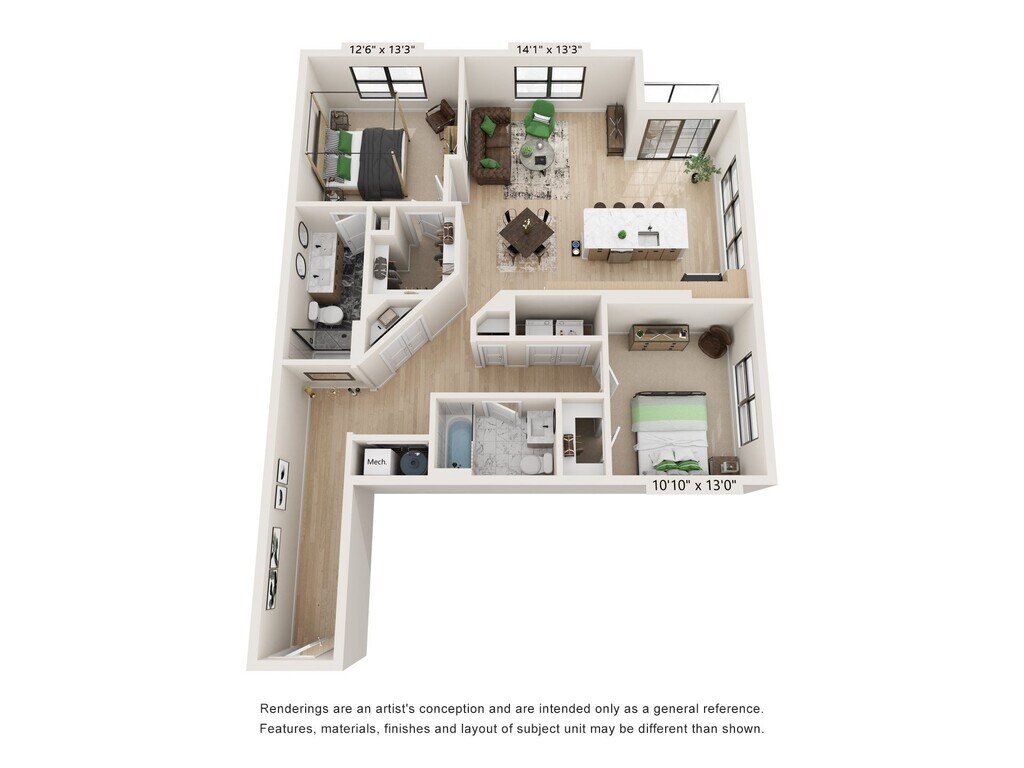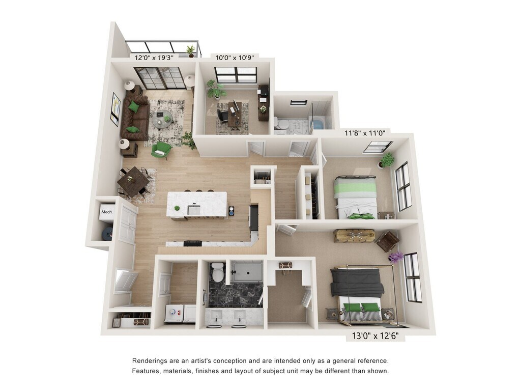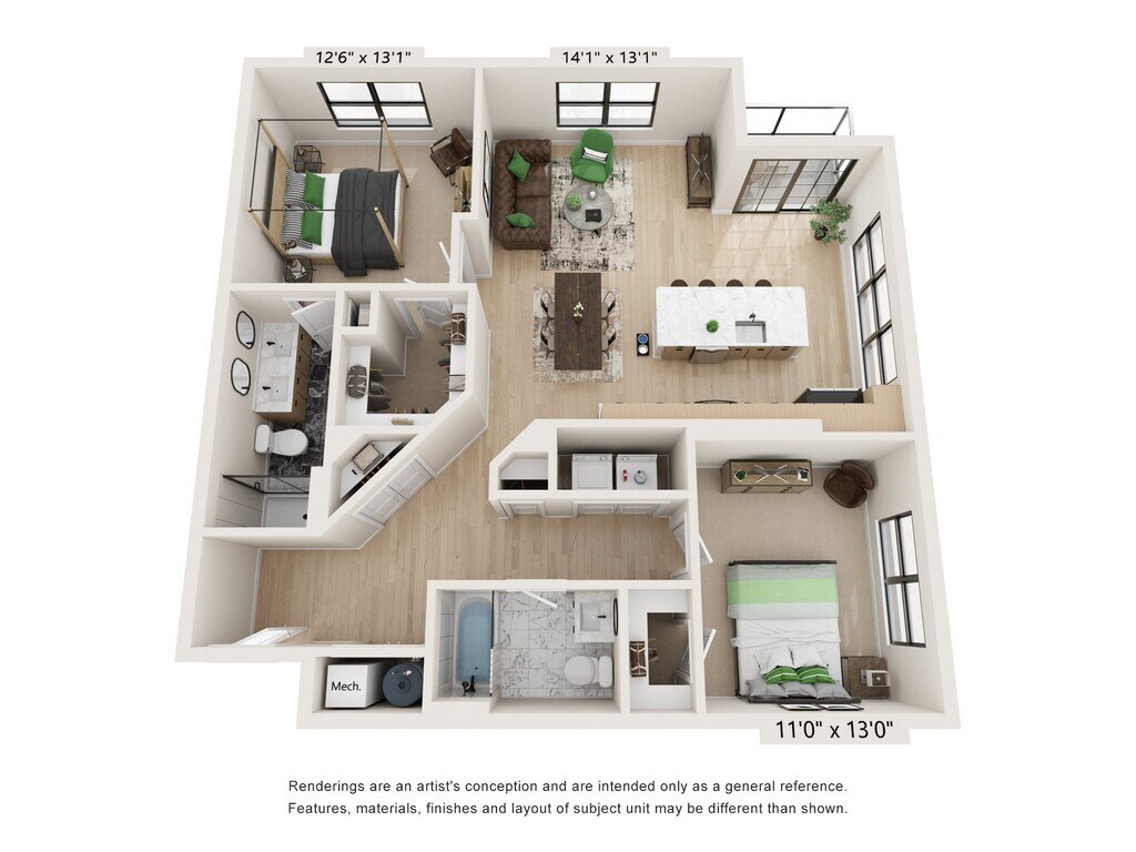 Apartment Model: The SerenityCall For Rates2 Bedroom, 2 Bath, 1383 sq ftUnavailable![]() - The Serenity - Floorplan 1