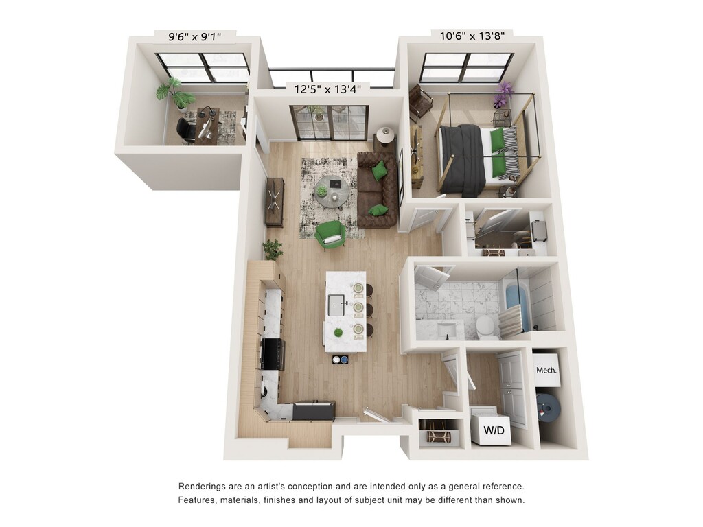 Apartment Model: The CalmCall For Rates1 Bedroom, 1 Bath, 1007 sq ftUnavailable![]() - The Calm - Floorplan 1