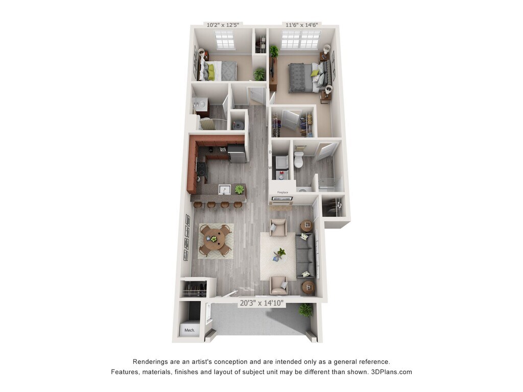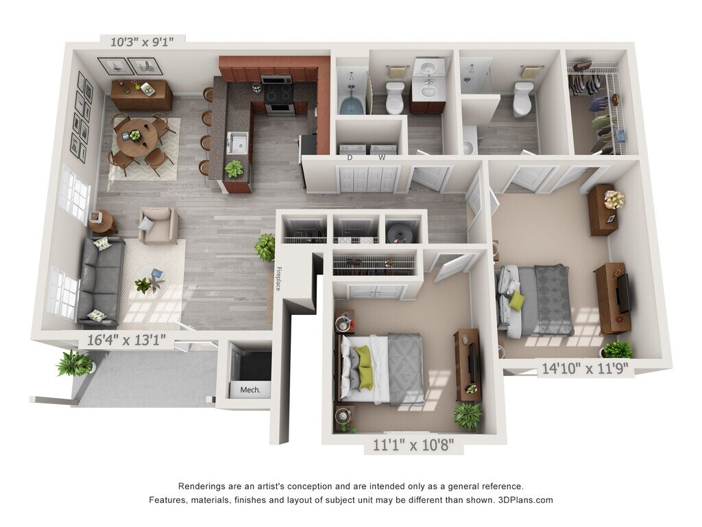 Apartment Model: The EllingtonCall For Rates2 Bedroom, 2 Bath, 1065 sq ftUnavailable![]()