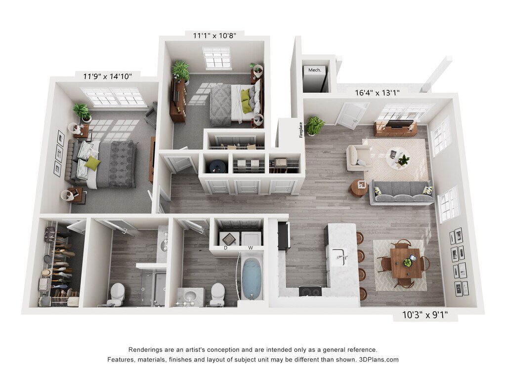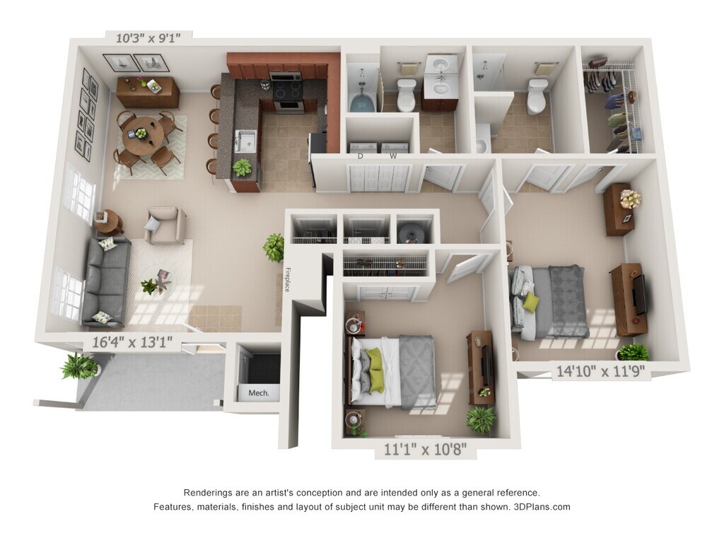 Apartment Model: The Ellington (Renovated)Call For Rates2 Bedroom, 2 Bath, 1012-1065 sq ftUnavailable![]()