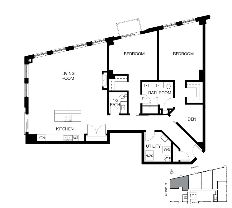 Apartment Model: 6B2 Bedroom, 1.5 Bath, 2082 sq ftUnavailable![]() - 6B - Floorplan 1