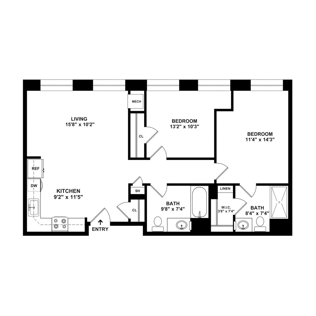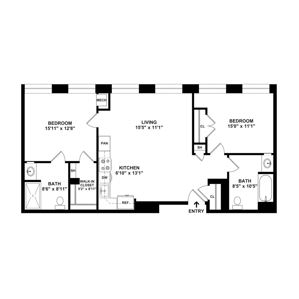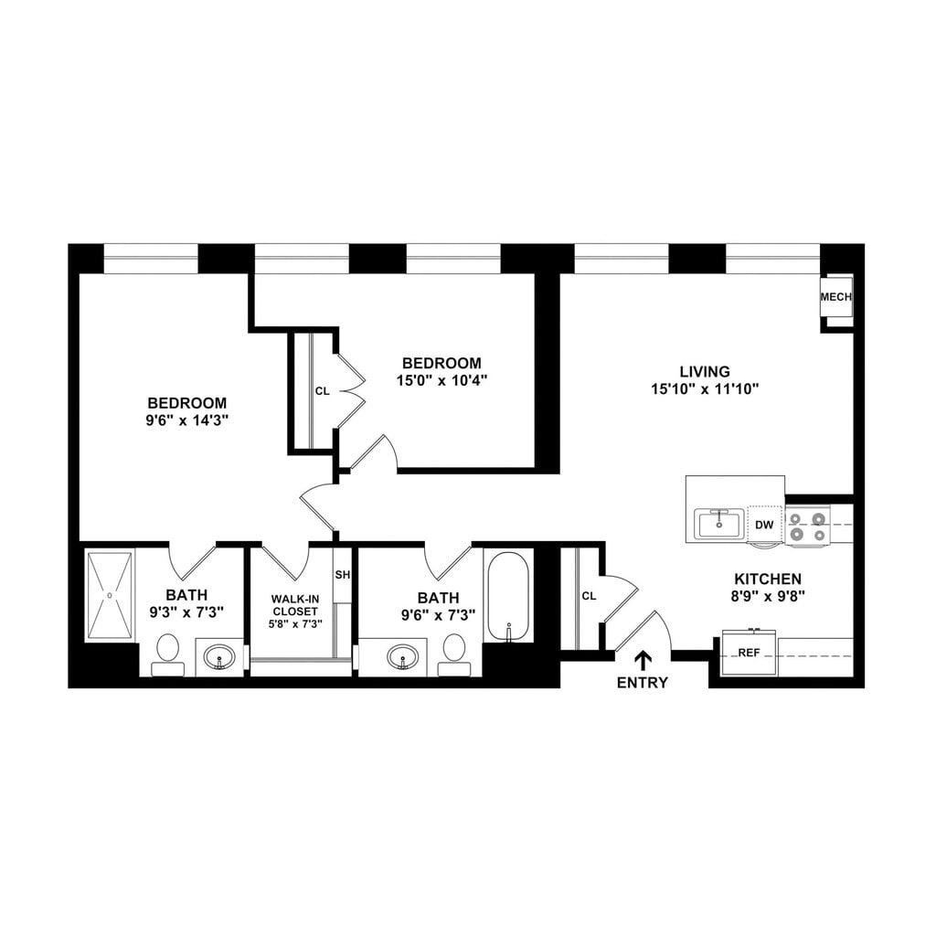 2 Bedroom - Income Restricted - Floorplan 1 ![]()