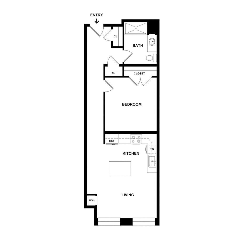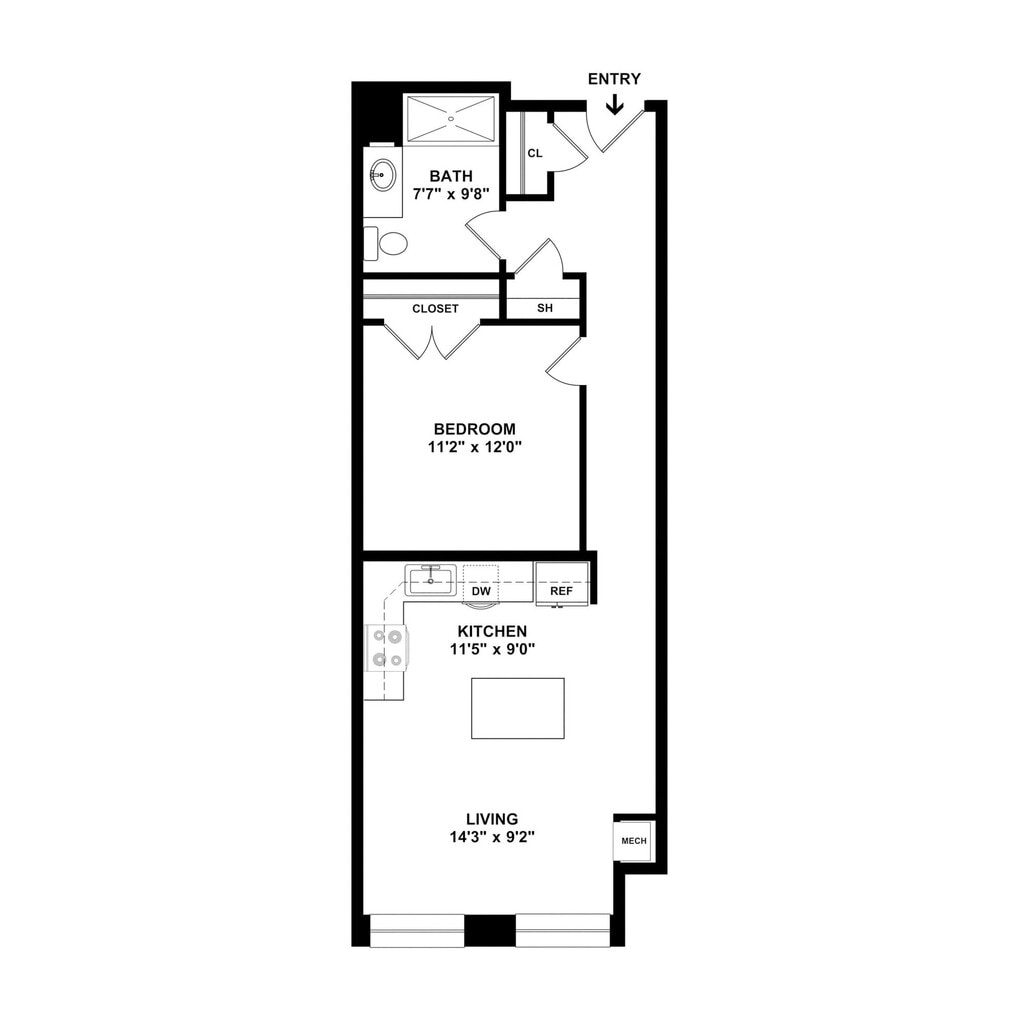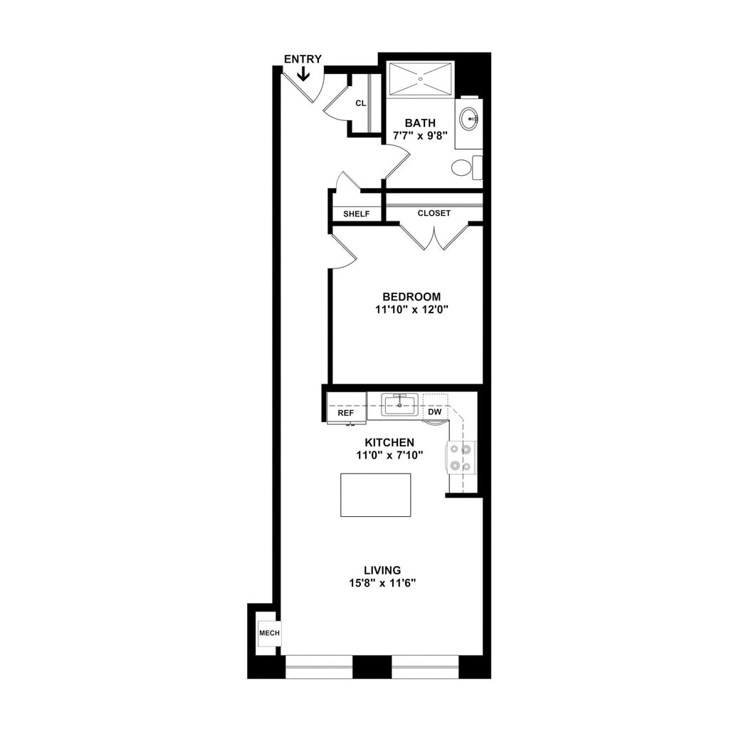 1 Bedroom - Income Restricted - Floorplan 1 ![]()