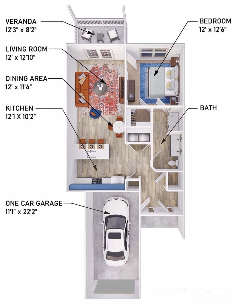 Price Availability Date Unit Sq Ft From $2,400 Available Now McBroom 1268 sq ft Model Amenities and Features
