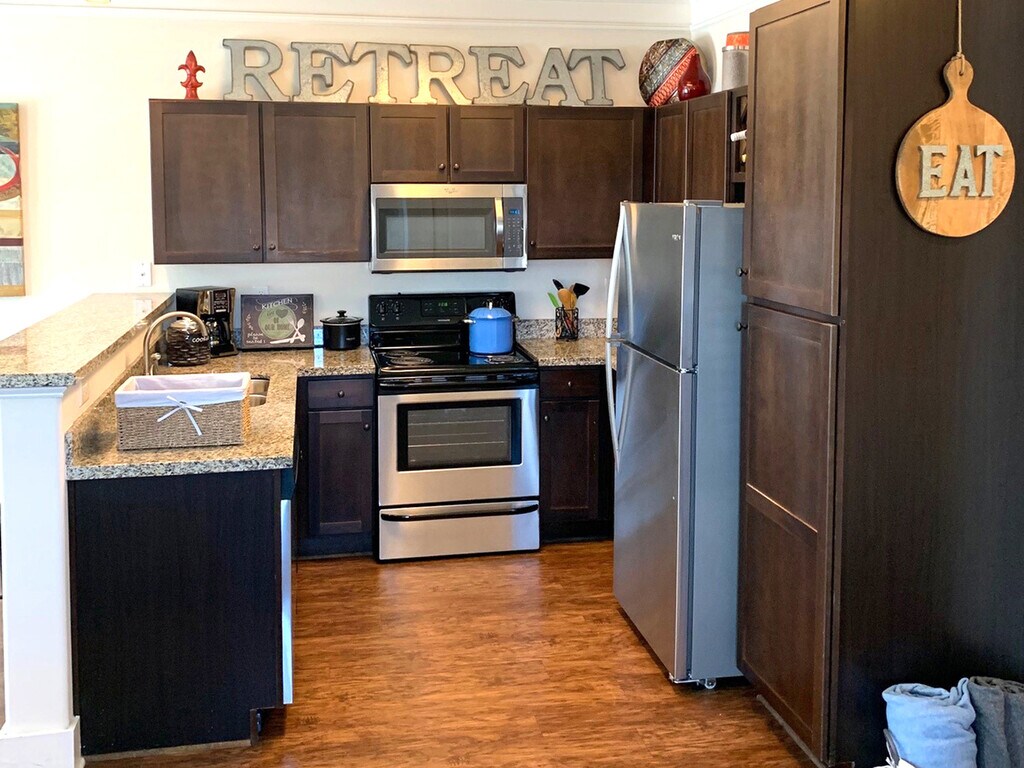- Full Kitchens with Fridge, Stove, Dishwasher & Microwave