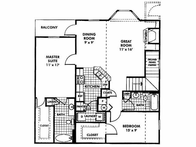 Cabernet - Floorplan 3 Apartment Unit: 1675LCApartment Model: Cabernet$1,7681 Bedroom, 1.5 Bath, 1207 sq ftAvailable November 2, 20252 Bedrooms
