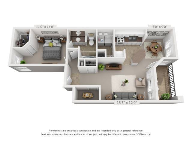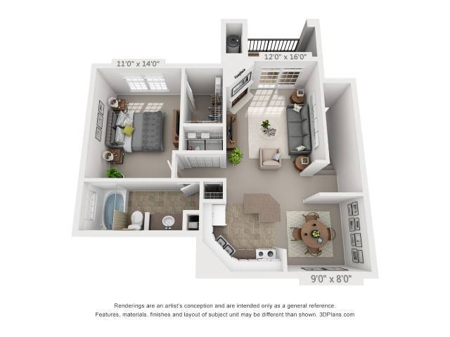 Apartment Model: The MiddletonCall For Rates1 Bedroom, 1 Bath, 788 sq ftUnavailableFloor plans are artist's rendering. All dimensions are approximate. Actual product and specifications may vary in dimension or detail. Not all features are available in every rental home. Please see a representative for details.