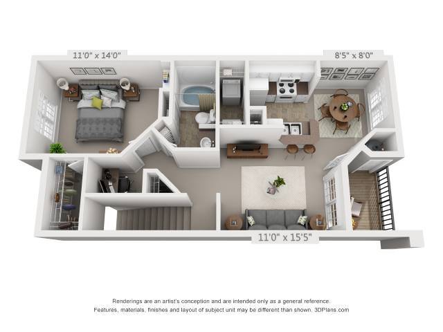 Apartment Model: The HuntsmanCall For Rates1 Bedroom, 1 Bath, 851 sq ftAvailable SoonFloor plans are artist's rendering. All dimensions are approximate. Actual product and specifications may vary in dimension or detail. Not all features are available in every rental home. Please see a representative for details.