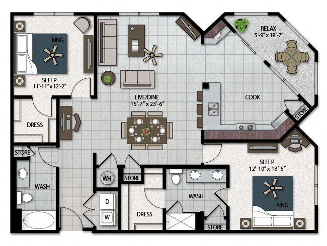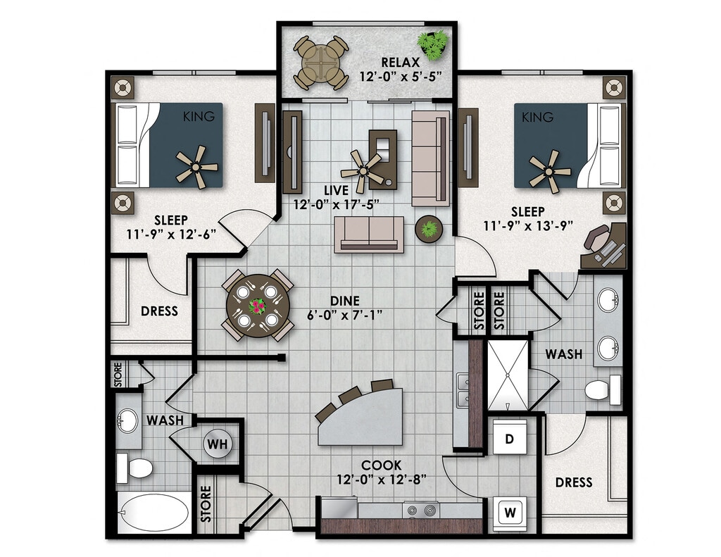 2 Beds, 2 Baths, 1205 sq ftAvailable NowCheapest 2 BedroomThis is the cheapest 2 Bedroom at this PropertyModel Gallery