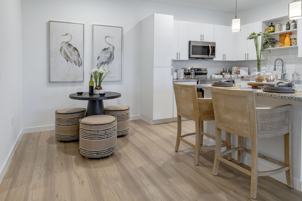 Your brand new apartment home situated in Kissimmee Florida features luxury amenities, upscale finishes, and a great walkable location within Sunset Walk. Take a splash in the heated pool, work up a sweat in the state-of-the-art fitness center, or sip a cup of coffee and relax in one of our many resident lounges. One-, two-, and three-bedroom apartments with thoughtfully designed interiors featuring fully-quipped kitchens with shaker cabinetry, granite countertops, and Maplewood vinyl flooring, you'll appreciate spacious floor plans that were created to provide an open and luxury home feel from the moment you step inside. Whatever your mood, you'll find your fit at The Retreat at Sunset Walk.