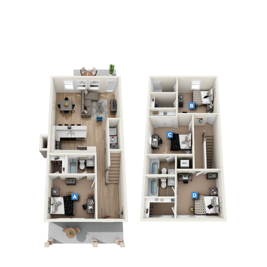 Apartment Model: Lumpkin B 4 x 4.54 Bedroom, 4.5 Bath, 2333 sq ftAvailable Now![]()