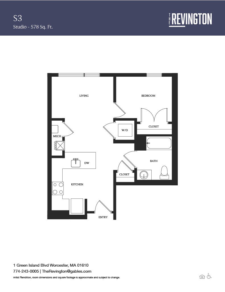 The Revington is located in the Green Island Neighborhood and 01610 Zip code of Worcester, MA. This community is professionally managed by Gables Residential