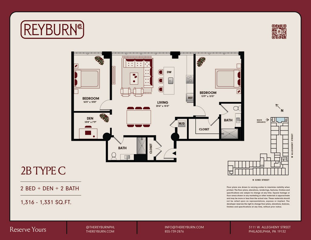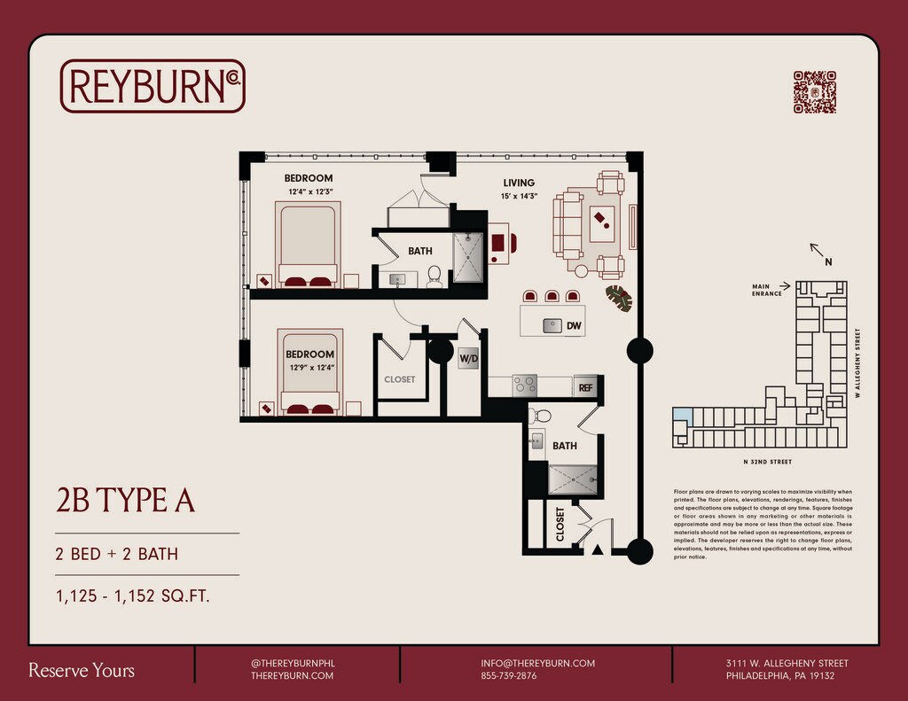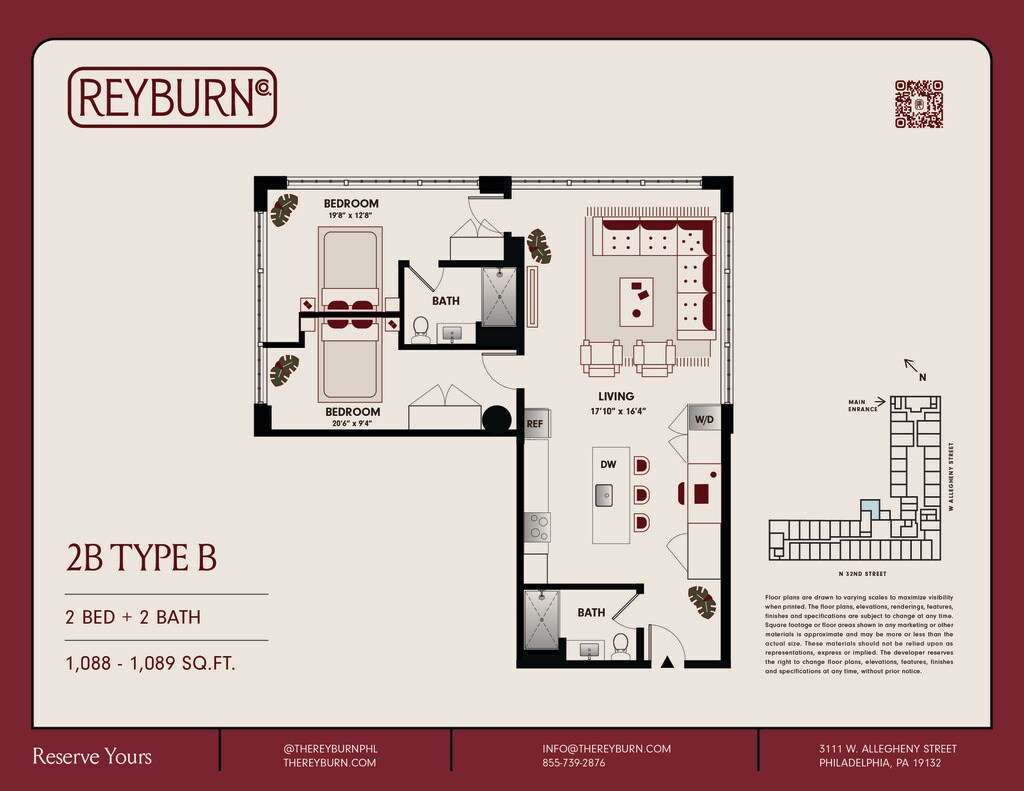 The Reyburn offers Studio to 2 Bedroom apartments starting from $1,378 and having 426–1,479 sq ft. Here is the current pricing and availability: