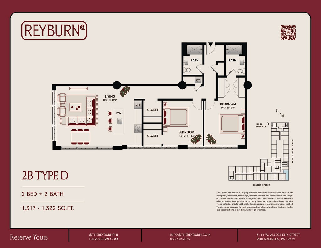 The Reyburn presents 164 studio, 1-bedroom, and 2-bedroom units thoughtfully designed to preserve and celebrate the buildings historic appeal. Each industrial-inspired unit boasts high ceilings, spacious layouts, and contemporary finishes. Step into our hotel-level lobby to enjoy coffee and a pastry. Break a sweat in our state-of-the-art fitness center or yoga studio. Relax or entertain in our lounge & golf simulator. Find focus in our co-working space. Or seek solace on our expansive roof deck, offering panoramic views and serene ambiance. Contact our leasing office to schedule a tour!