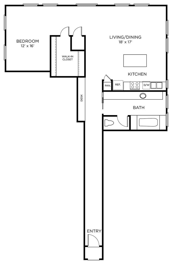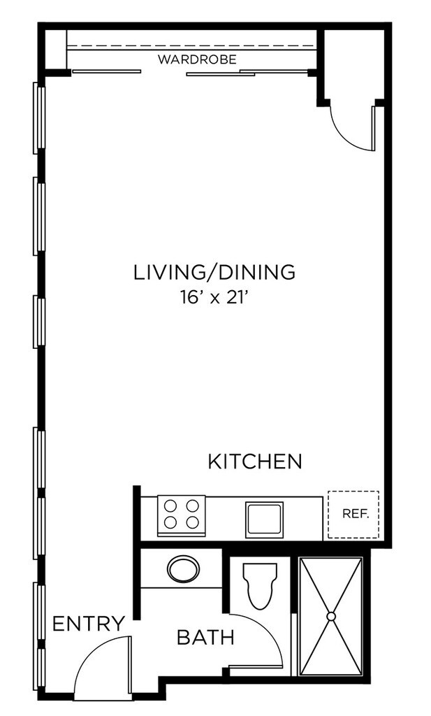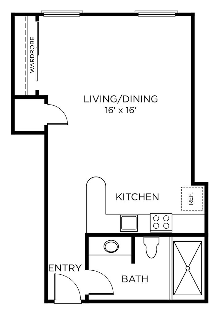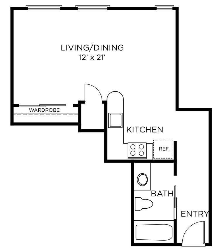 A2 - Studio - Image 3 Floor plans are artist's rendering. All dimensions are approximate. Actual product and specifications may vary in dimension or detail. Not all features are available in every rental home. Prices and availability are subject to change. Base rent is based on monthly frequency. Additional fees may apply, such as but not limited to package delivery, trash, water, amenities, etc. Deposits vary. Please see a representative for details.