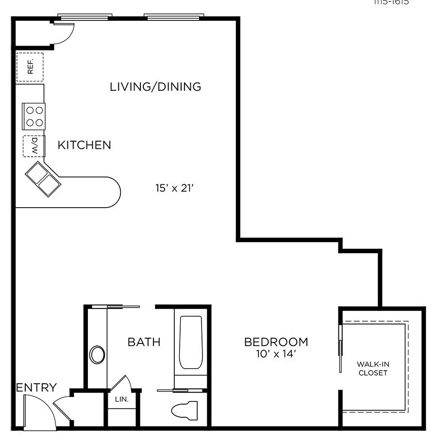 Studio, 1 Bath, 484 sq ftAvailable NowModel Gallery
