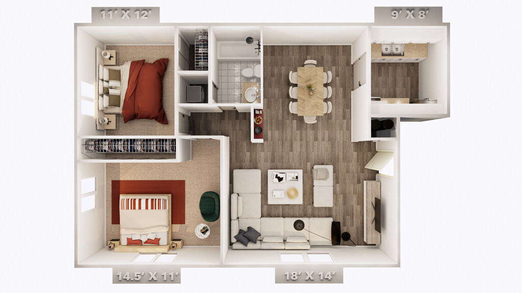 2 Beds, 1 Bath, 900 sq ftAvailable NowModel Gallery