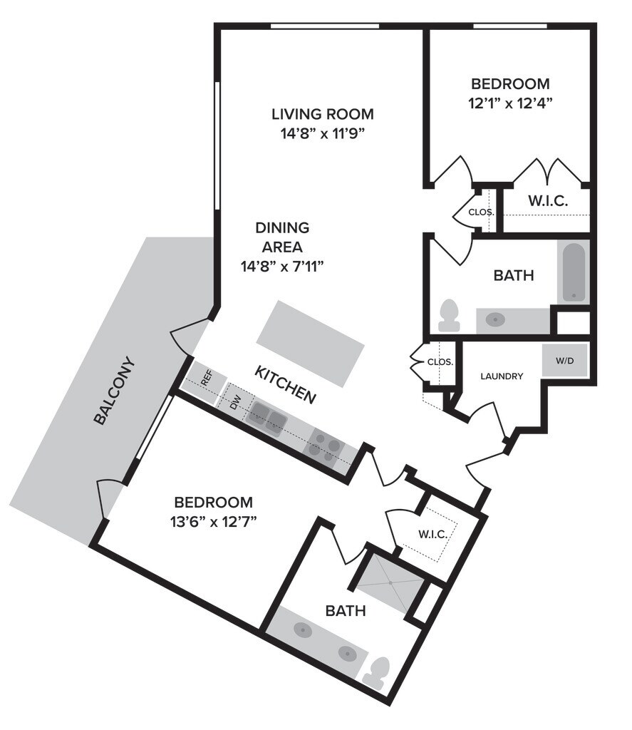 1 Bed, 1 Bath, 711 sq ftAvailable NowModel Gallery