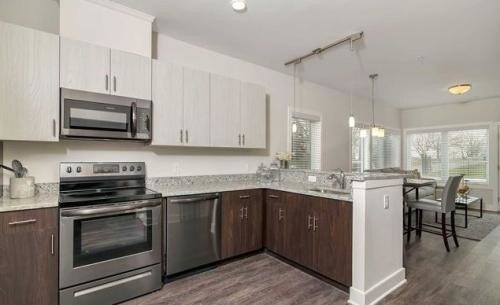 No Security deposit No Broker fee. One of North Arlington's newest luxury building "The Ridge",1 bedroom unit with a "flex" room(can be used as den or room)Included beautiful stainless steel appliances, open kitchen, dining room, breakfast bar, walk-in closet, large patio on selected units. ADA large bathrooms. Lobby/community room w flat screen, video intercom, fitness center, card operated laundry room, indoor/outdoor parking, bike storage. Location is ideal for transportation, bus to NYC at the corner: DeCampus bus #44 c and NJ Transit #76 to Hackensack/ Penn Station 1.5 miles to NYC train.