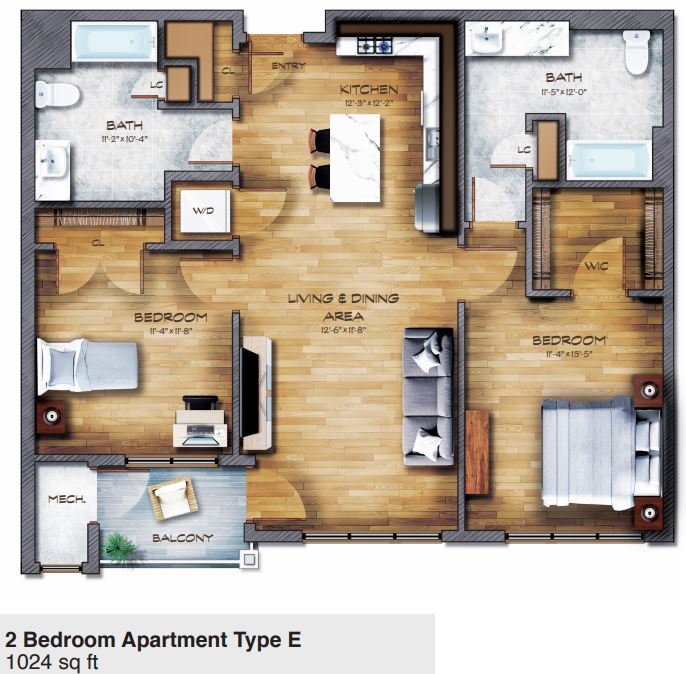 2 Beds, 2 Baths, 1024 sq ftModel Gallery