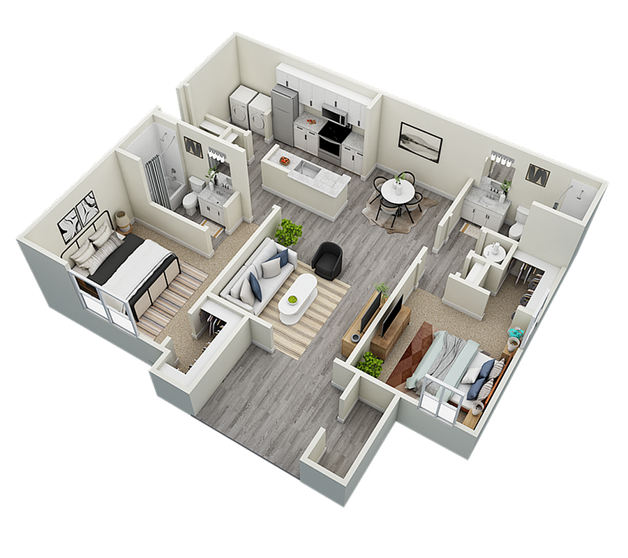 2 Beds, 2 Baths, 1155 sq ftAvailable NowModel Gallery