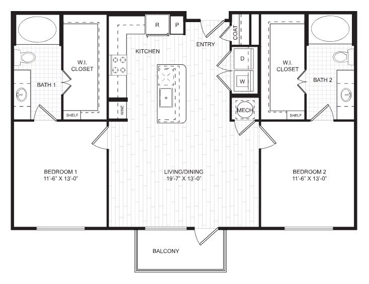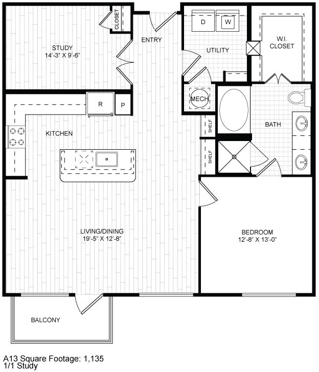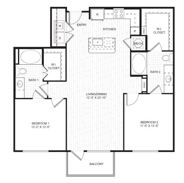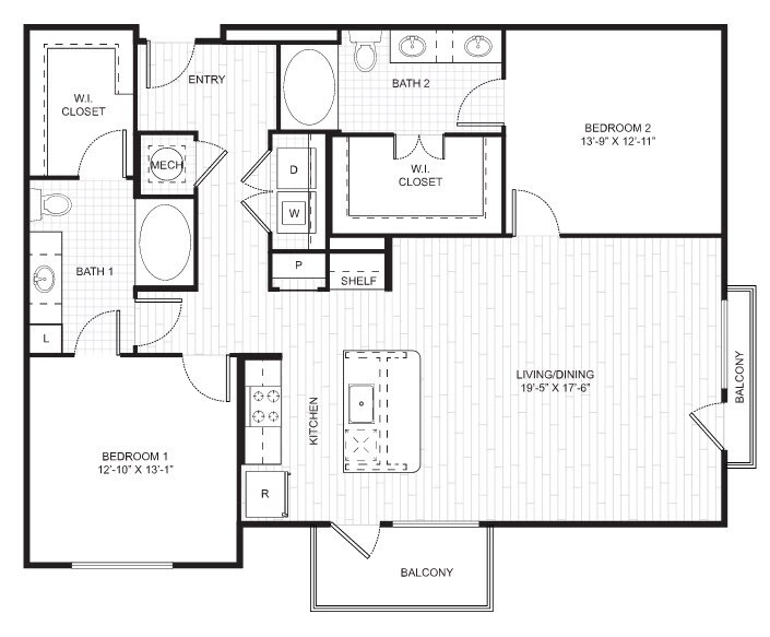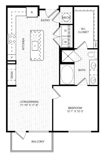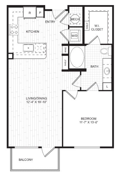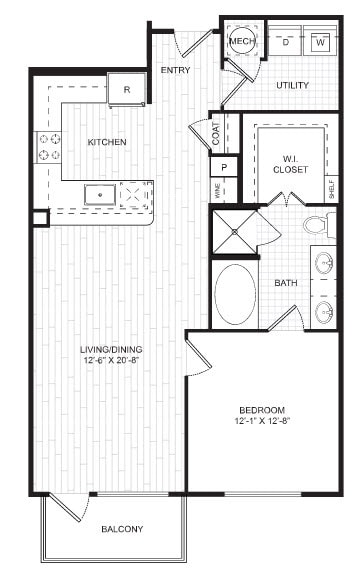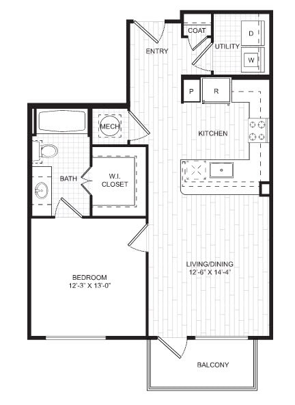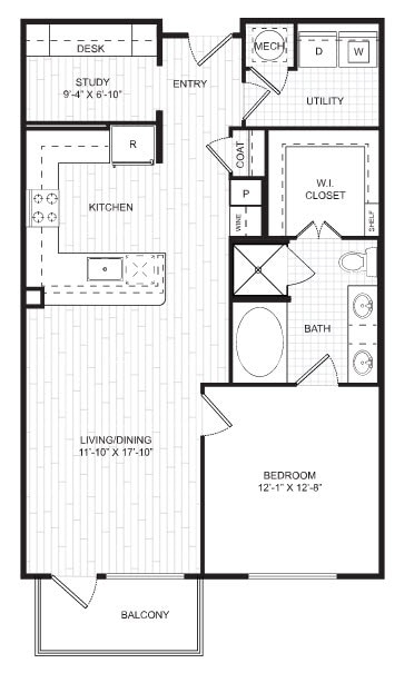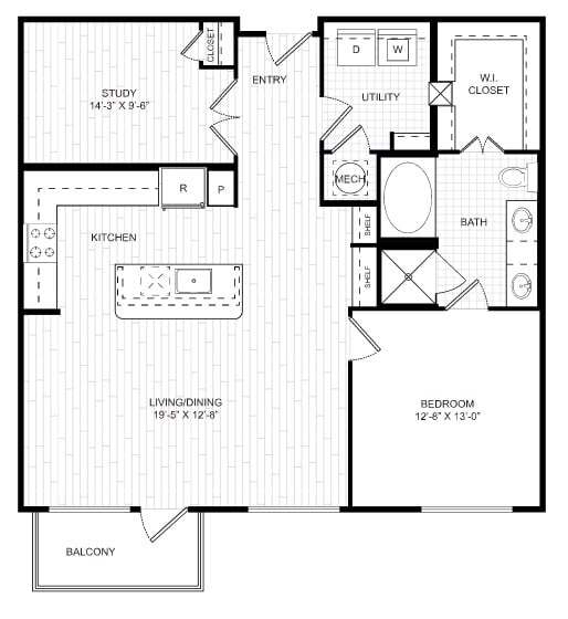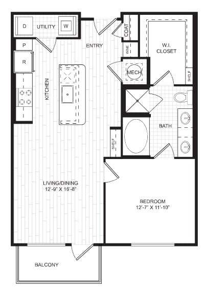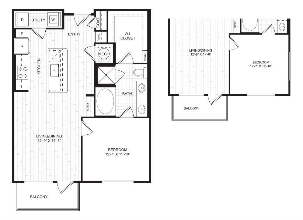 1 Bed, 1 Bath, 619 sq ftModel Gallery