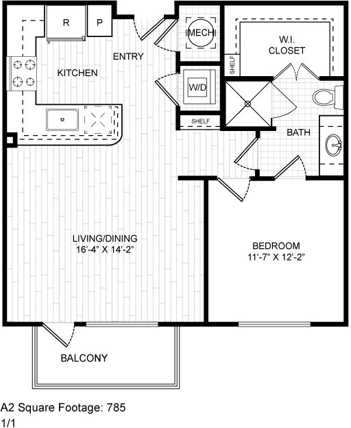 1 Bed, 1 Bath, 785 sq ftModel Gallery