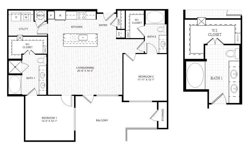 1 Bed, 1 Bath, 792 sq ftModel Gallery