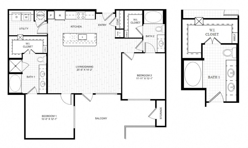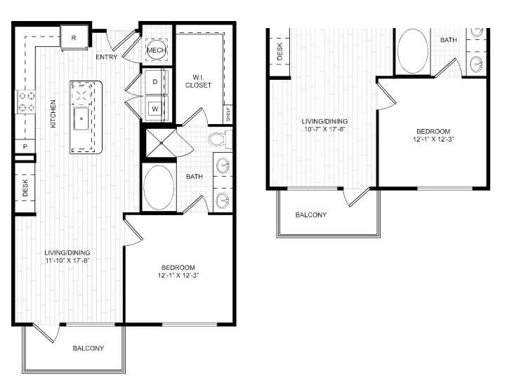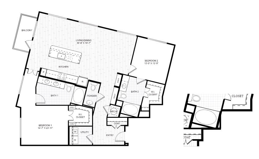 1 Bed, 1 Bath, 714 sq ftModel Gallery
