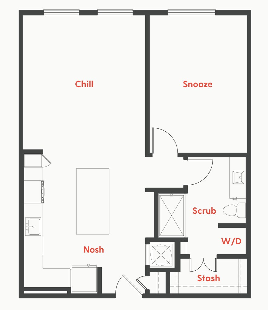 S2a - Floorplan 1 Apartment Unit: 1110Apartment Model: S2a$1,199Studio, 1 Bath, 576 sq ftAvailable NowFloorplan S2d