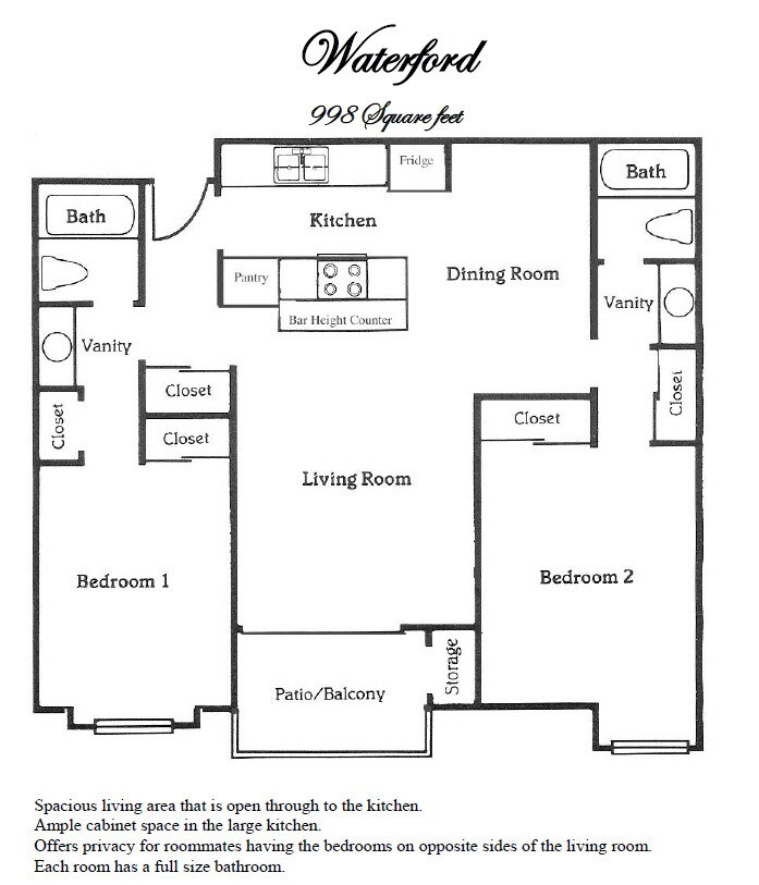 Apartment Unit: 111-DApartment Model: Waterford Two Bedroom (Coming Soon)$2,8002 Bedroom, 2 Bath, 998 sq ftAvailable October 31, 2025$3,000