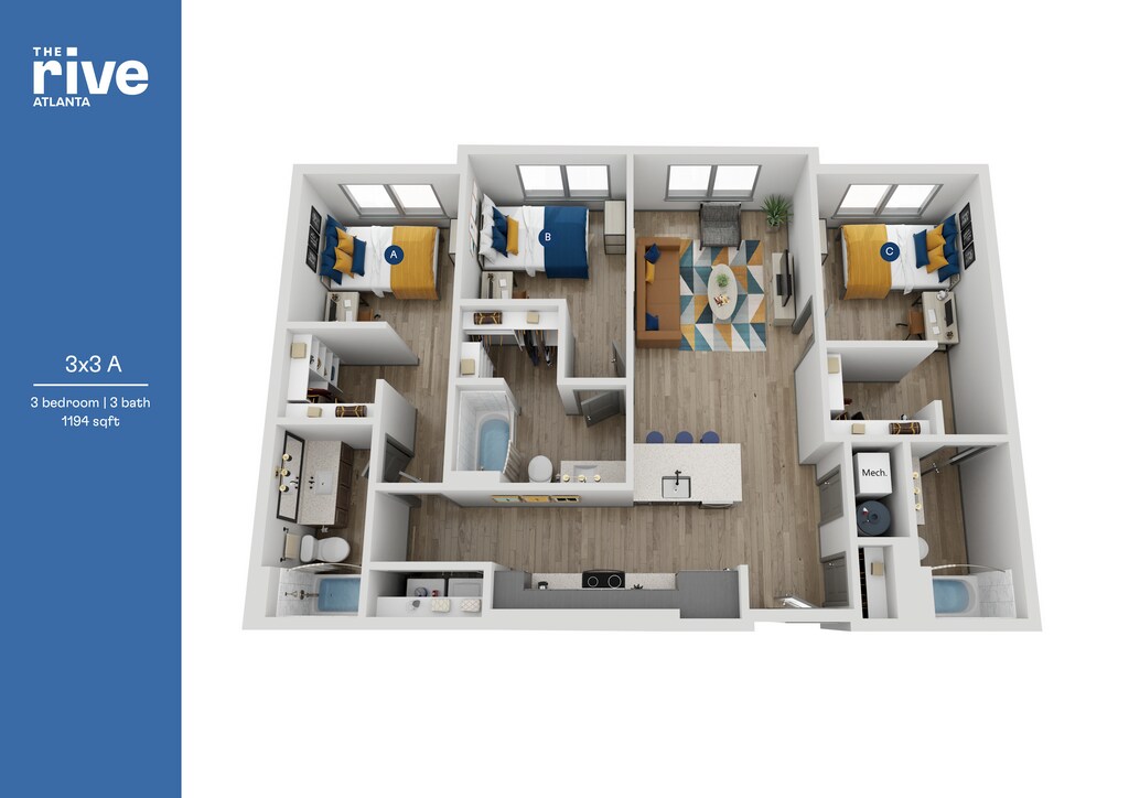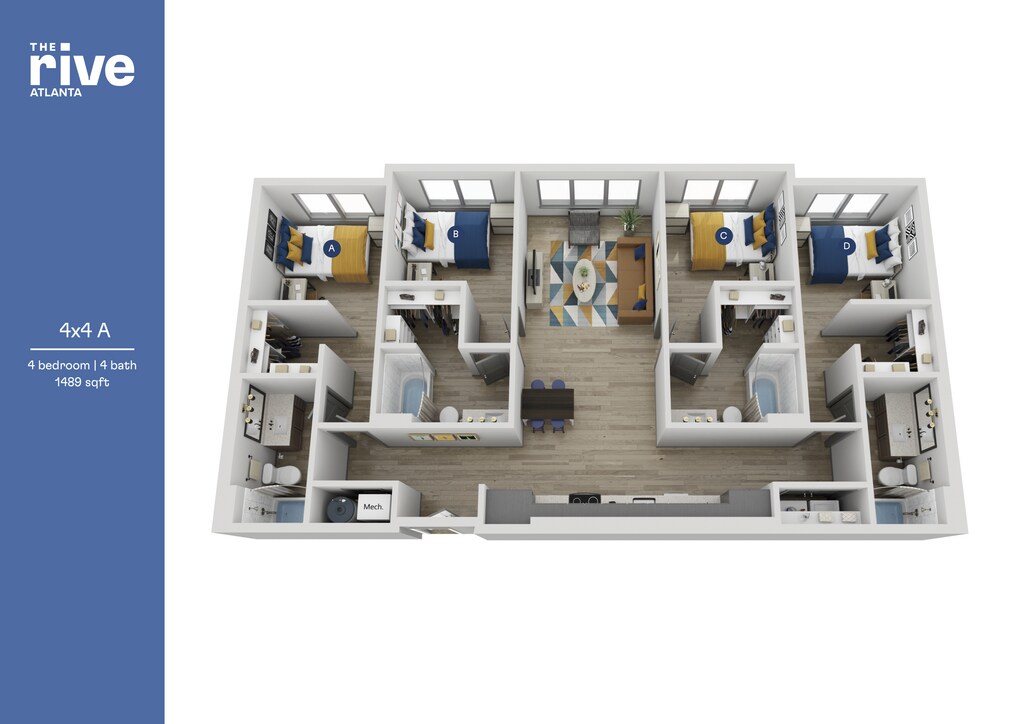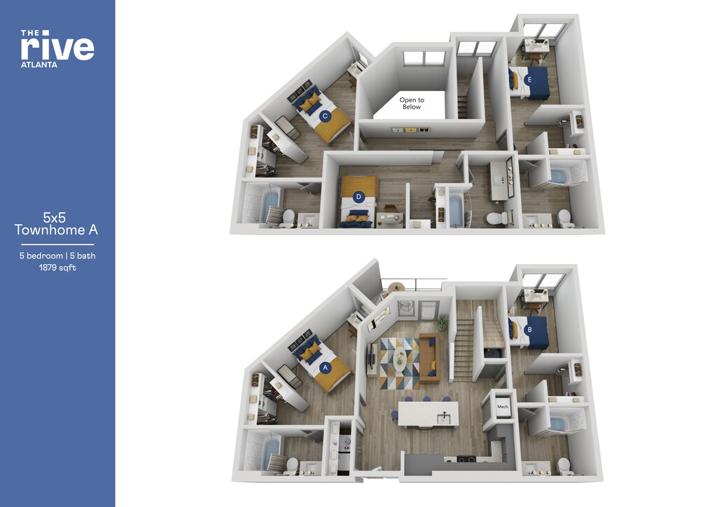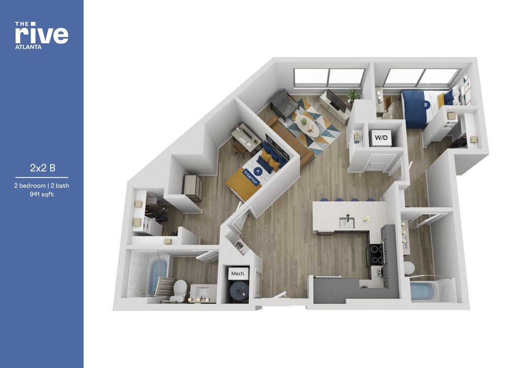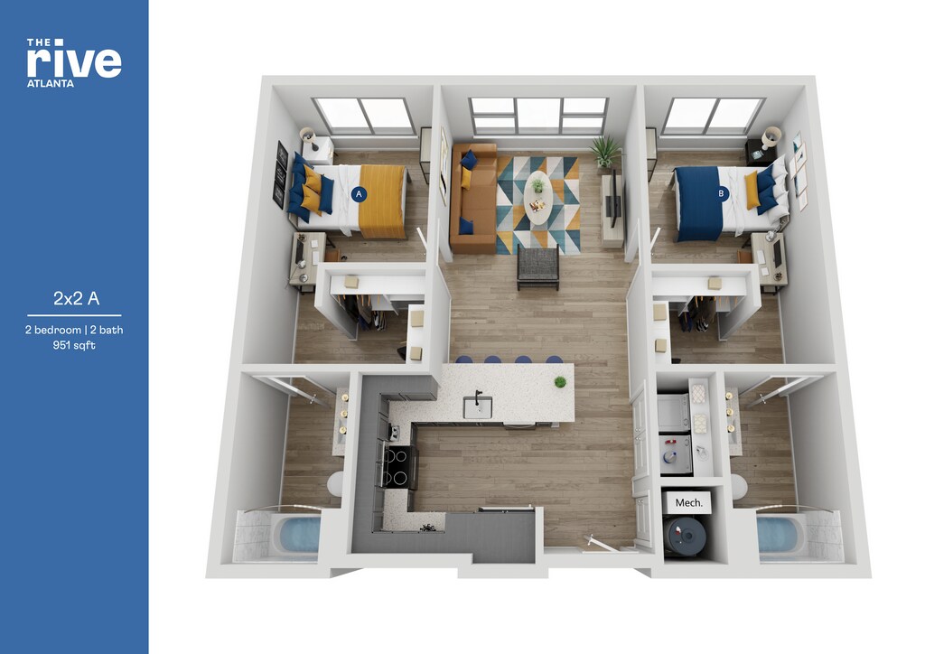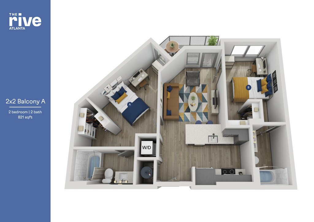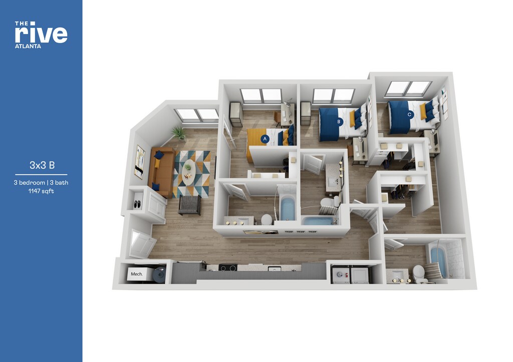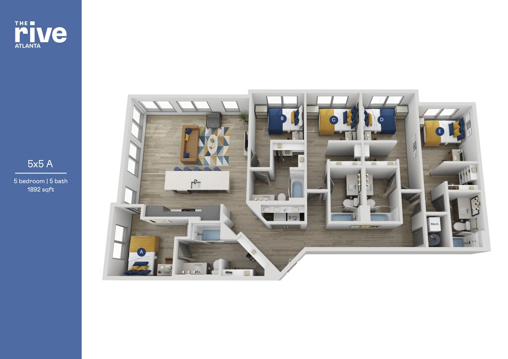 The Rive Atlanta offers Studio to 5 Bedroom apartments starting from $949 and having 455–1,892 sq ft. Here is the current pricing and availability: