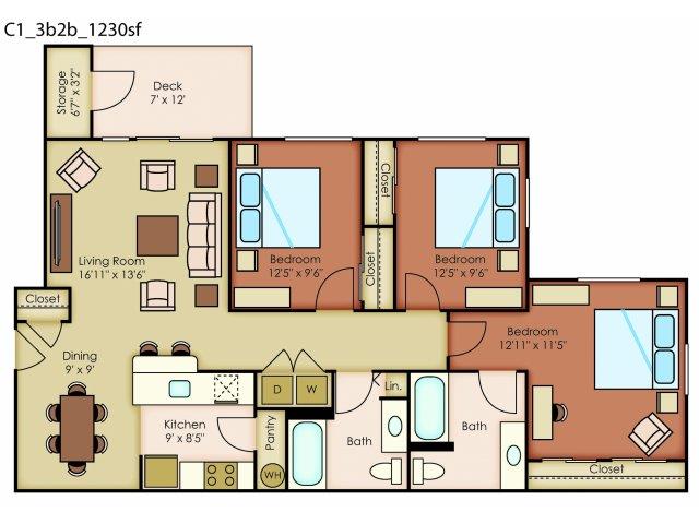 1 Bed, 1 Bath, 787 sq ftAvailable NowLargest 1 BedroomThis is the largest 1 Bedroom at this PropertyModel Gallery