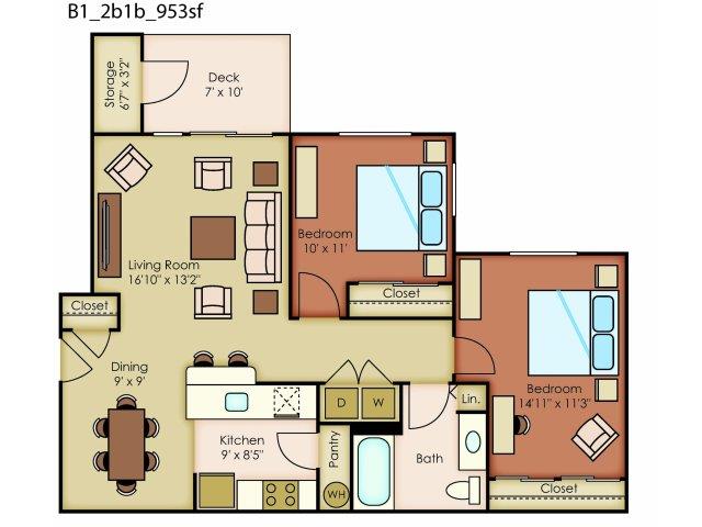 Show Unavailable FloorplansTwo Bedroom One Bathroom 953 sf