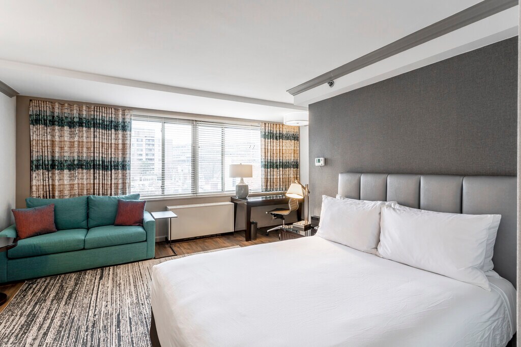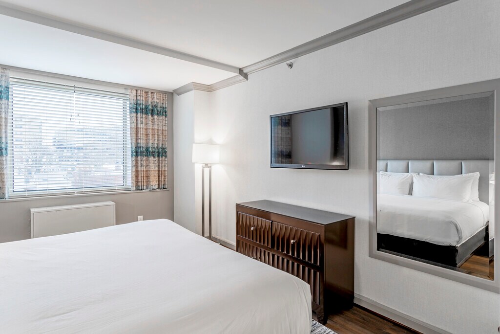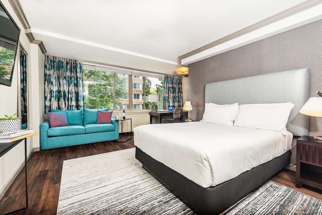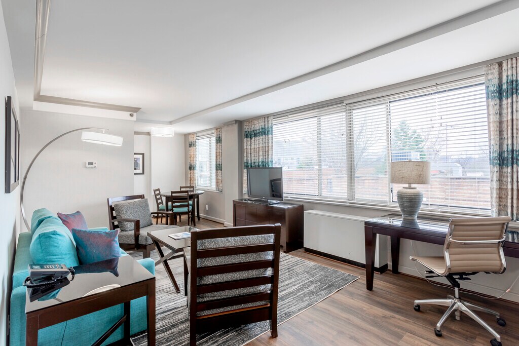 Tucked away on a tree-lined street near Georgetown, the River Inn strikes the perfect balance between relaxation and serenity, while still embracing the spirit of Washington, DC. The River Inn is conveniently located four blocks from the Kennedy Center, three blocks from the metro, and five blocks to the picturesque shops and restaurants of Georgetown. The National Mall, Smithsonian Institute, and White House are all just a quick metro ride away from your pied-à-terre in Washington DC. Some apartments feature beautiful views of the Potomac River. All units are elegantly furnished and feature a kitchenette, sleeper sofa, flat screen television(s), and a 6 foot desk that provides the perfect workspace away from home or the office. Wi-Fi, high definition cable, and utilities included. Pets stay free. Elevator, Fitness center, Laundry room, Parking, Wheelchair access