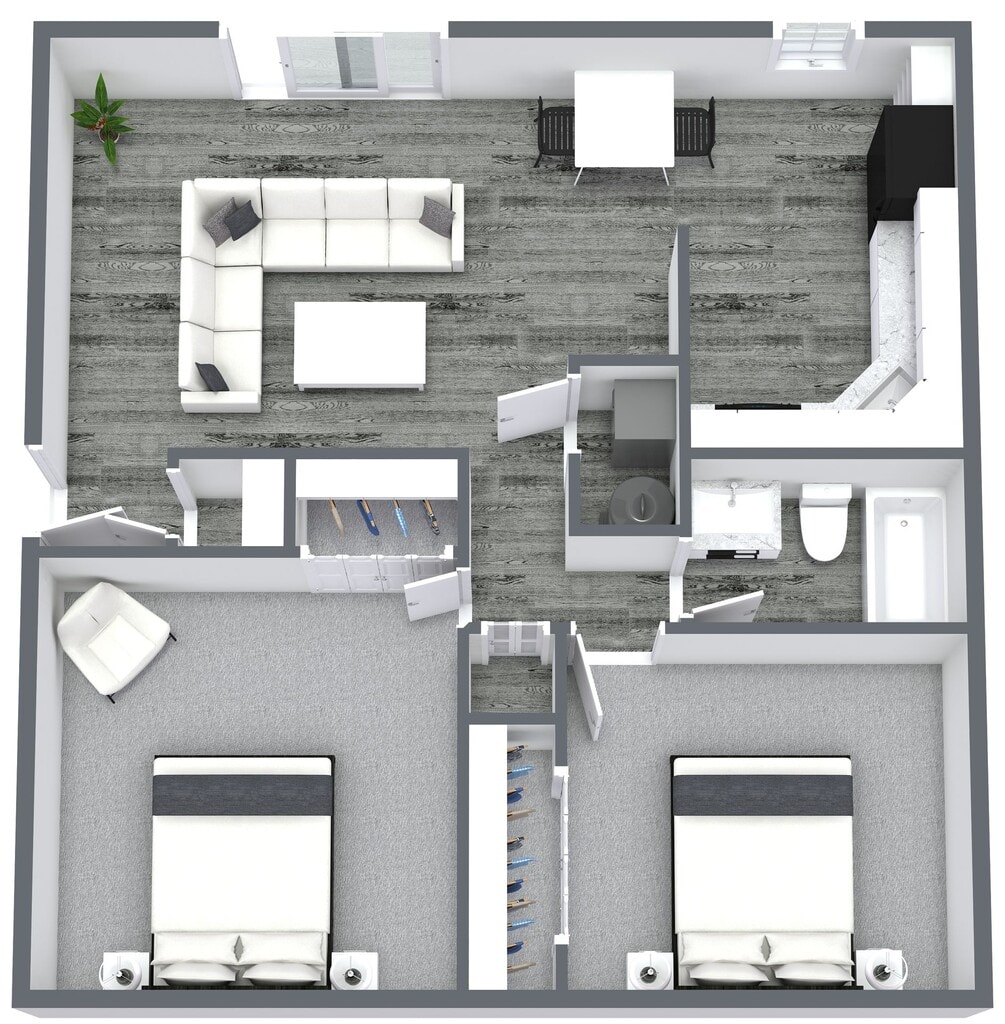 2 Beds, 1 Bath, 895 sq ftAvailable NowLargest 2 BedroomThis is the largest 2 Bedroom at this PropertyModel Gallery
