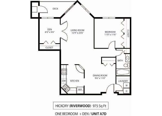 Hickory 1 Den - Floorplan 1 2 Bedrooms