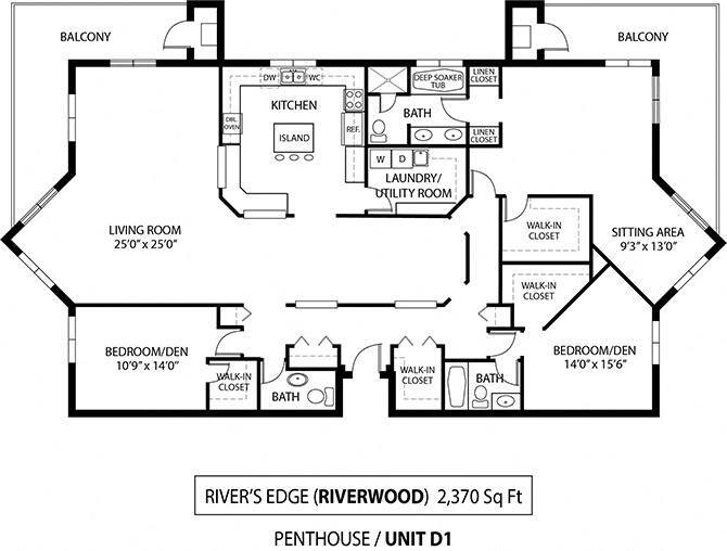 The Riverwood offers Studio to 3 Bedroom apartments starting from $1,799 and having 610–2,370 sq ft. Here is the current pricing and availability: