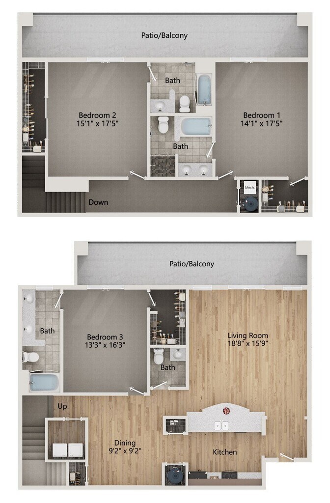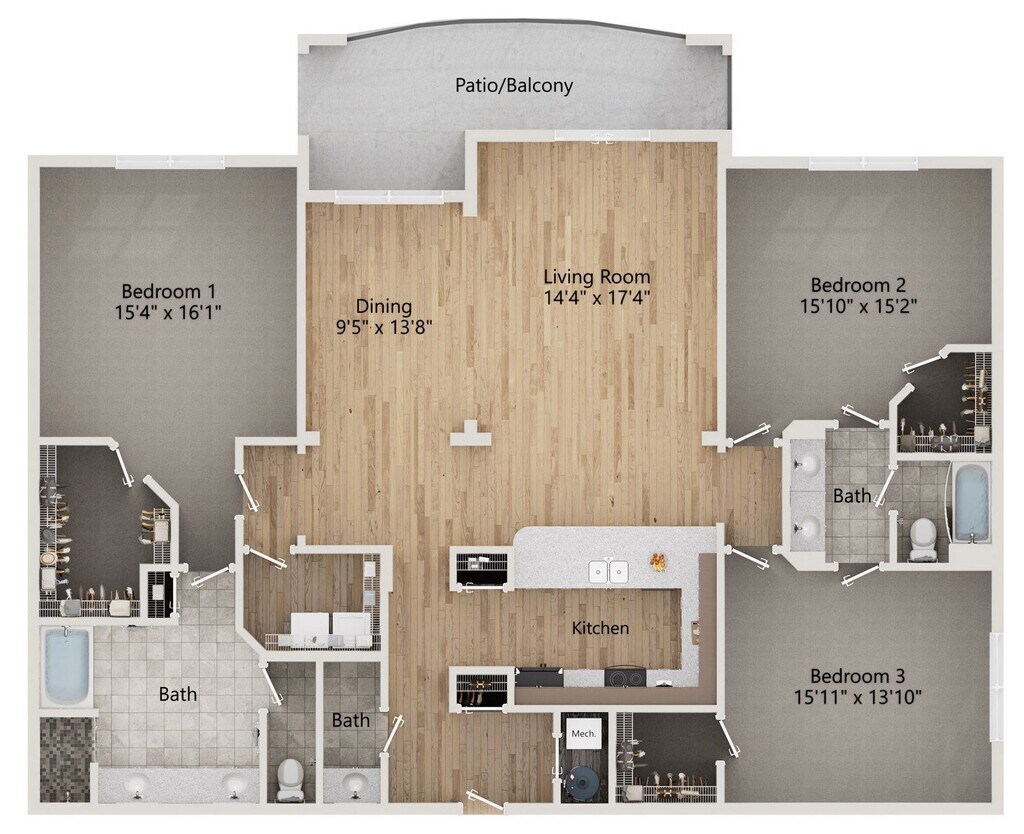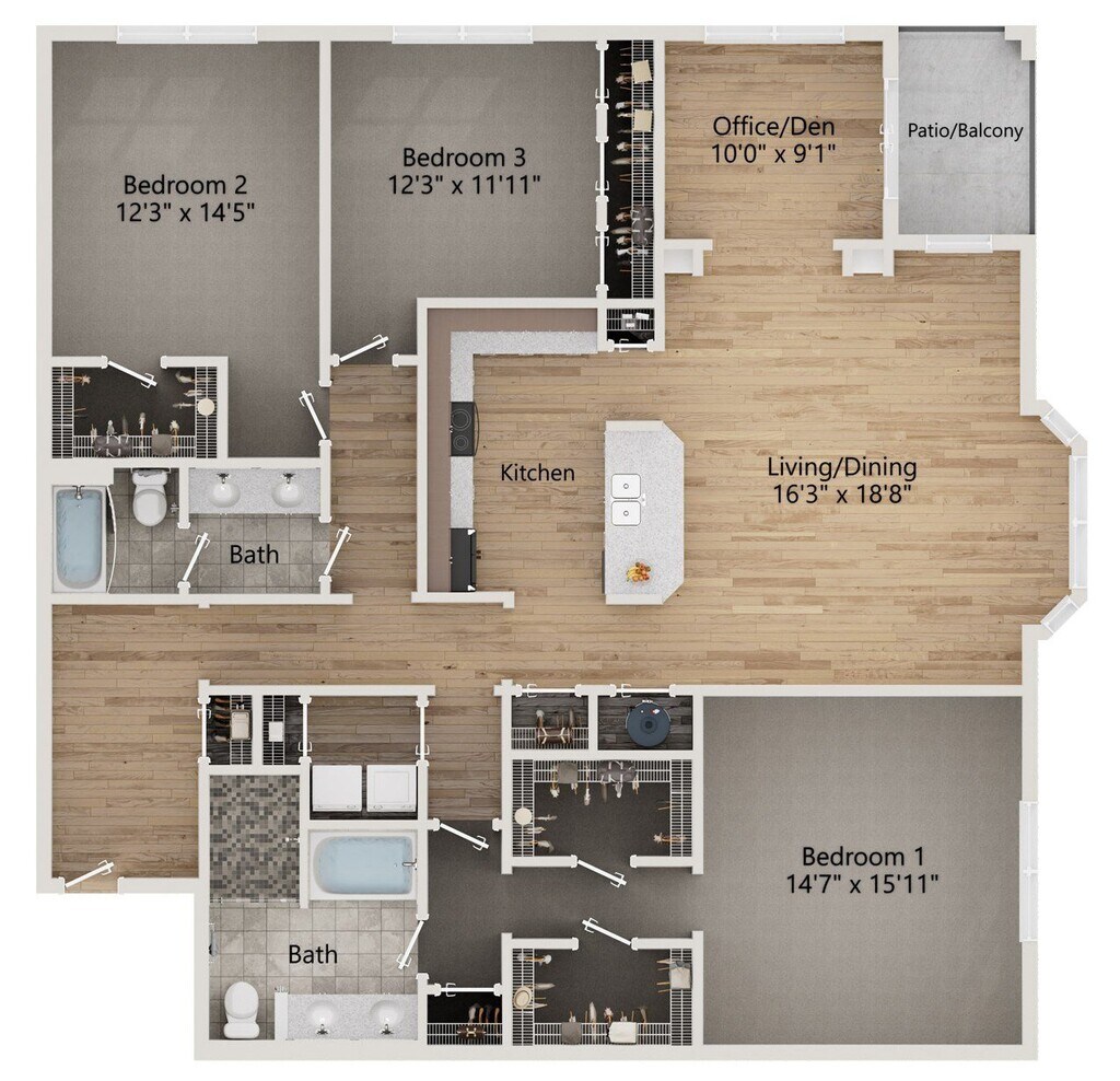 - 1, 2, & 3 Bedroom Open-Concept Floor Plans
