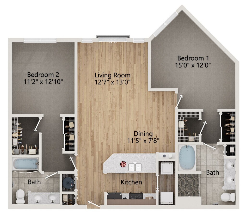 X-II - Floorplan 1 Apartment Unit: 04428Apartment Model: X-IICall For Rates1 Bedroom, 1 Bath, 860 sq ftAvailable NowE-II