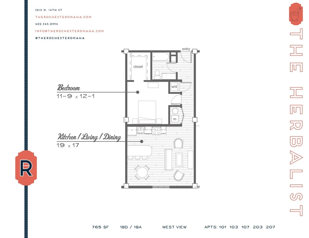 The Rochester Apartments is located at 1015 N 14th St near the Downtown Omaha area of Omaha, NE