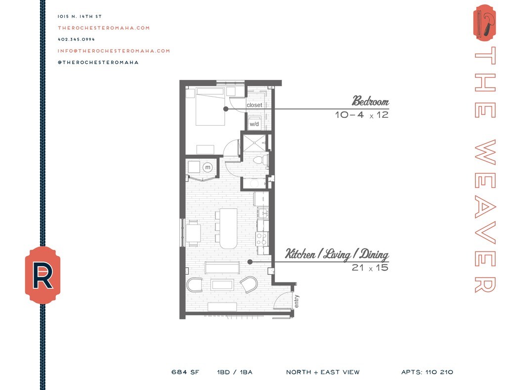 The Weaver - Floorplan 1 Apartment Unit: 110Apartment Model: The Weaver$1,0851 Bedroom, 1 Bath, 684 sq ftAvailable NowThe Storyteller