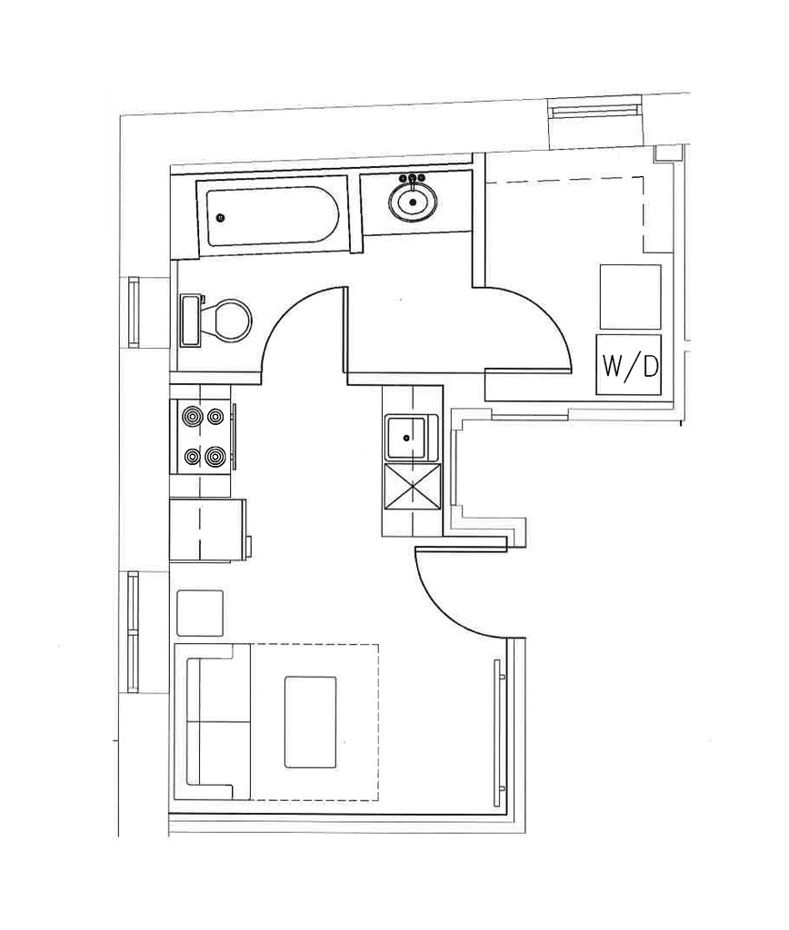 Studio, 1 Bath, 308-356 sq ftModel Gallery
