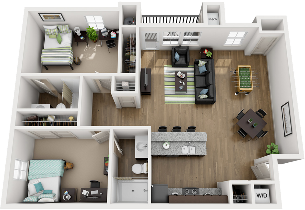 2 Beds, 2 Baths, 590 sq ftAvailable NowModel Gallery