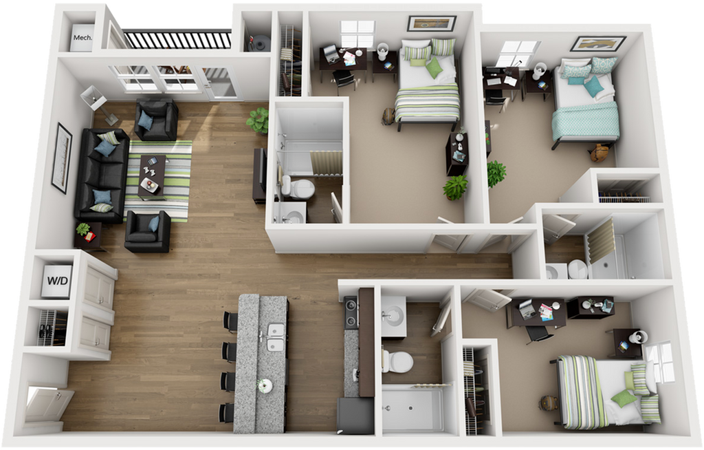 3 Beds, 3 Baths, 469 sq ftAvailable NowModel Gallery