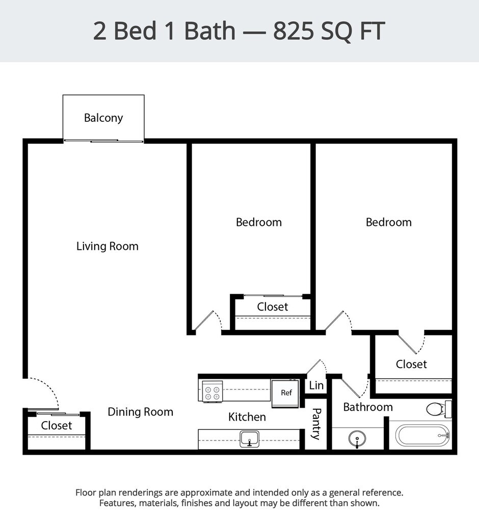 2 Beds, 1 Bath, 825 sq ftModel Gallery